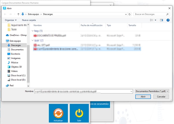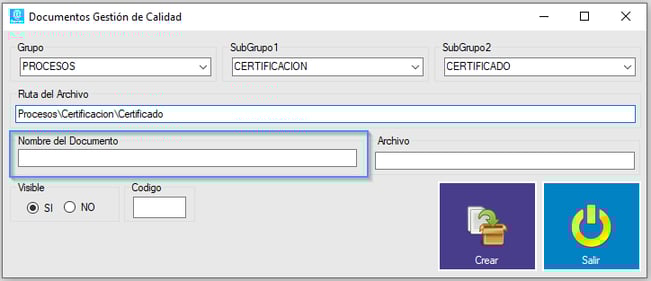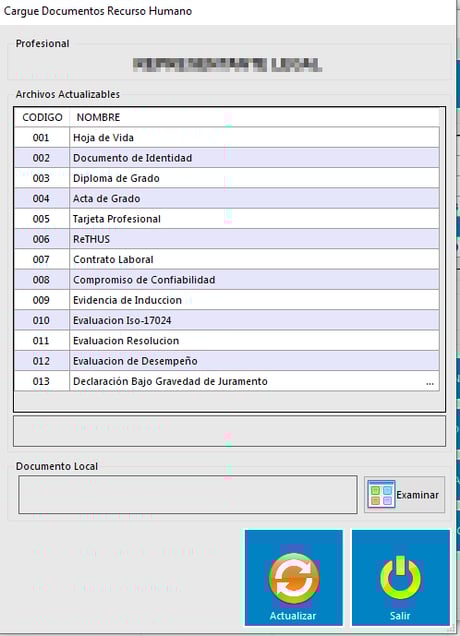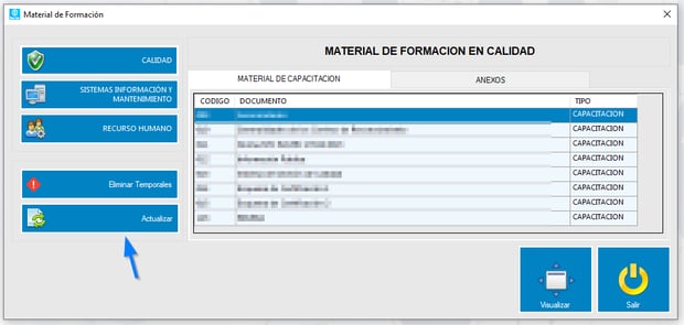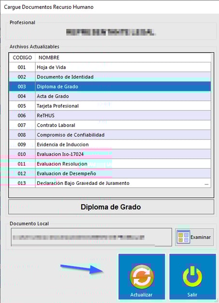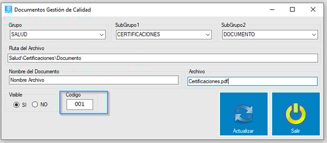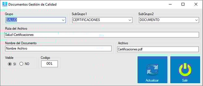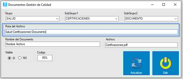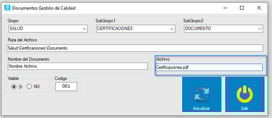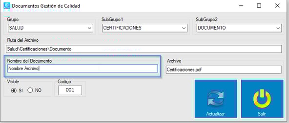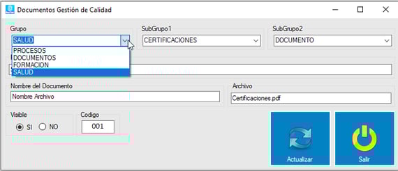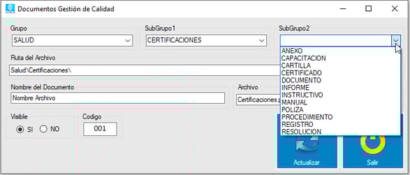 NOTA: Al actualizar el documento seleccionado el sistema regresa a la funcionalidad de formación.