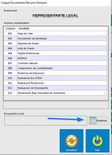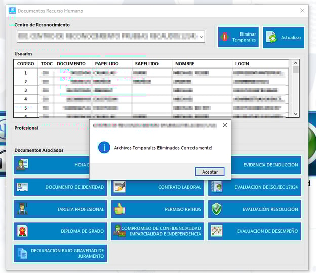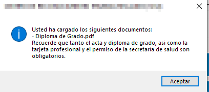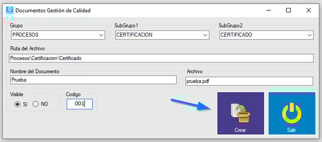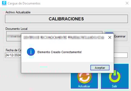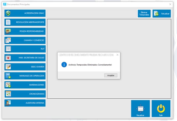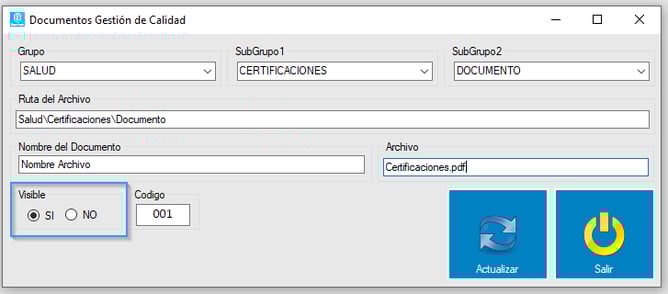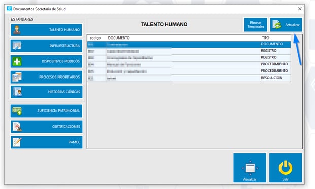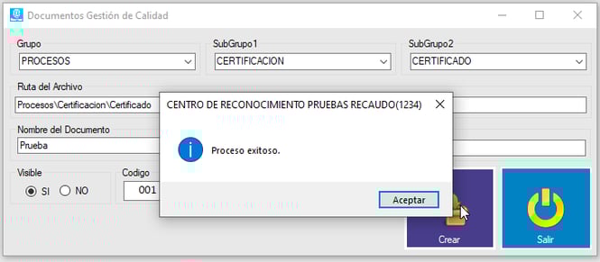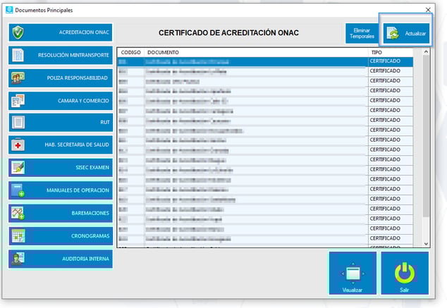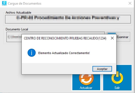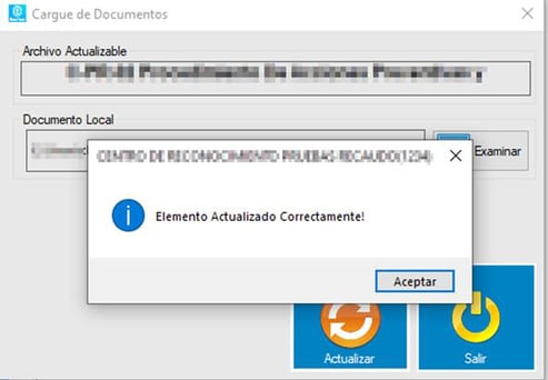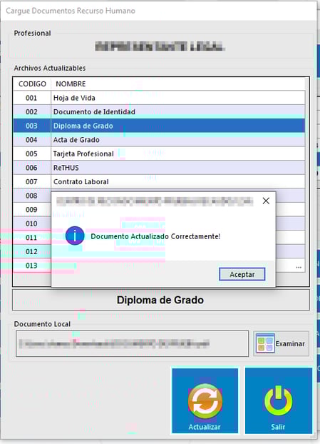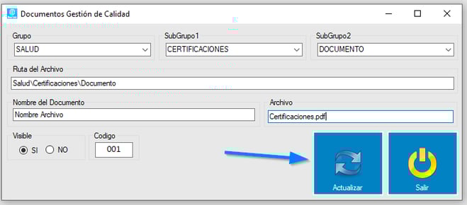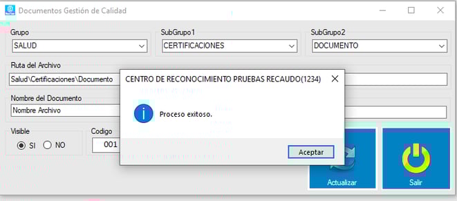 Al hacer clic sobre este botón el sistema actualiza el documento seguido de una ventana emergente confirmando la actualización.