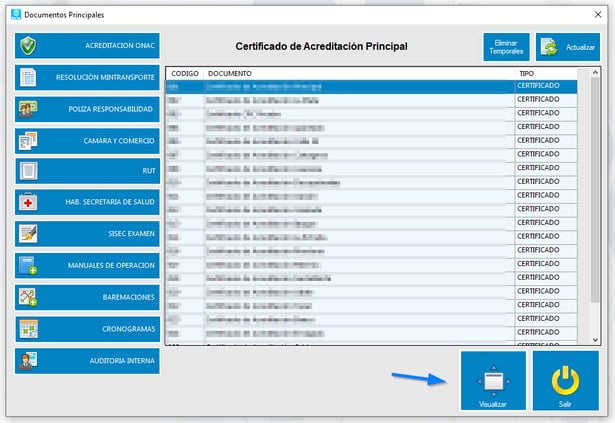 En la funcionalidad de documentos, se puede visualizar los diferentes documentos que acreditan al CRC para realizar las operaciones correspondientes.