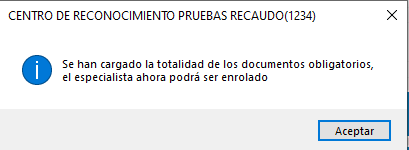 Cuando sea cargada la totalidad de los documentos el sistema confirma el proceso e indica que es posible generar su enrolamiento.