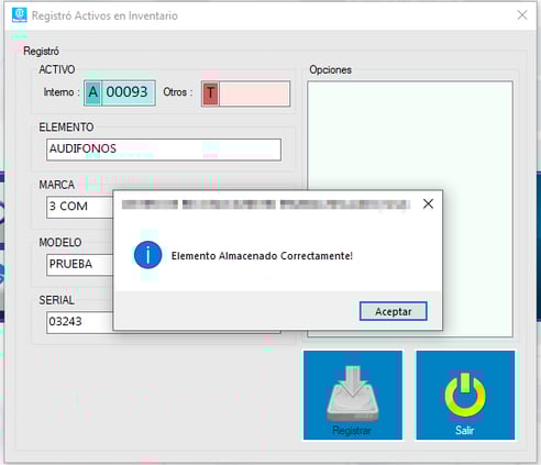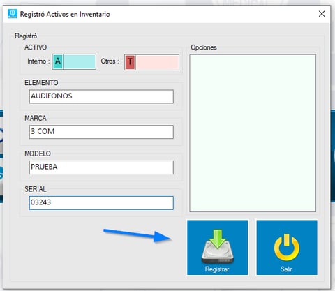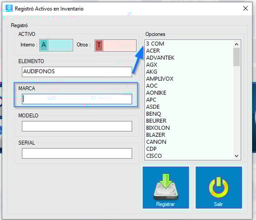 - Automáticamente se selecciona el cuadro de texto siguiente donde se registra la marca del elemento y en el cuadro “Opciones” se muestra las marcas de los elementos asociados.