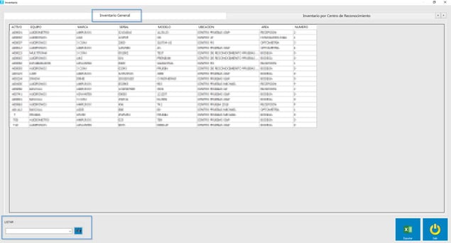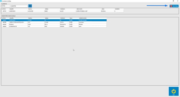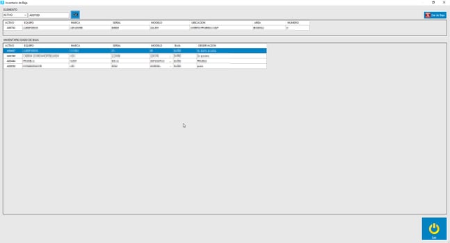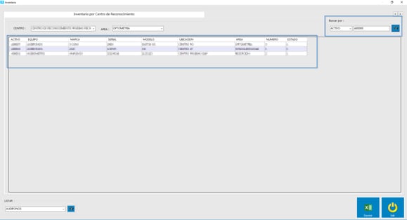 buscar ubicado en la parte derecha, seguidamente aparece en la tabla de abajo el elemento activo que fue buscado.
