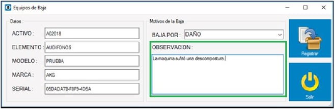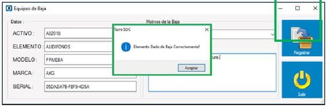 - El resto de casillas se deben completar según el modelo y el serial del equipo que se está registrando