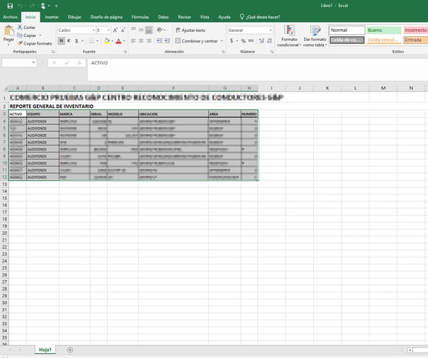 Inmediatamente se visualiza debajo de datos la información detallada sobre el equipo activo.