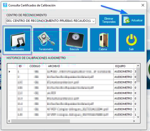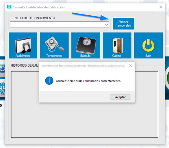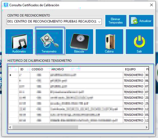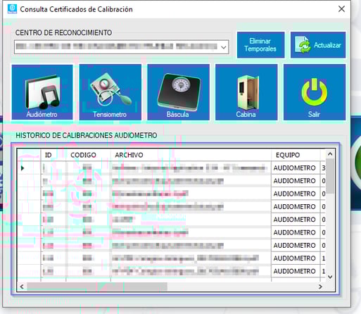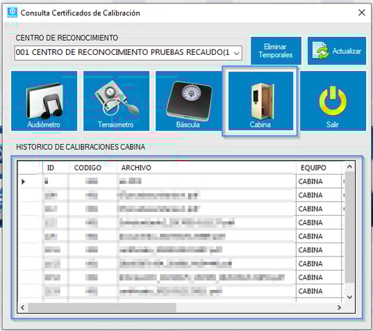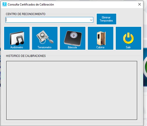 NOTA: Este botón solo puede ser visible una vez se hace clic en cualquiera de los siguientes botones (Audiómetro, Tensiómetro, Báscula, Cabina).
