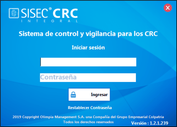 En esta interfaz adicionalmente a los módulos principales, se encuentra en la parte inferior izquierda la información de la Compañía, el nombre del CRC al cual pertenece el usuario que ingreso y el nombre del usuario que inicio sesión.