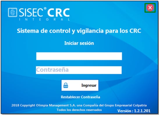 En la parte inferior izquierda se visualiza el botón “Cerrar” que permite salir de la aplicación.