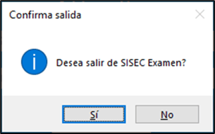 la aplicación abre una pestaña de confirmación de la salida de la aplicación, si confirma se cierra y retorna a la pantalla principal del equipo.