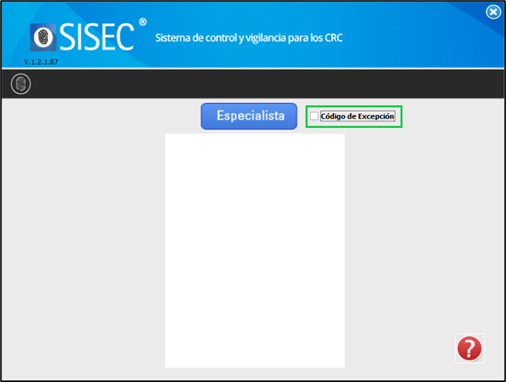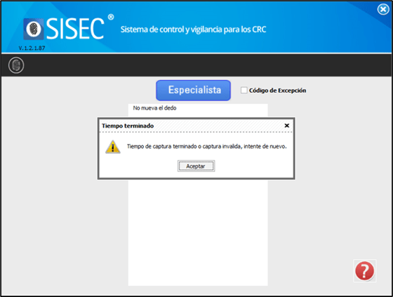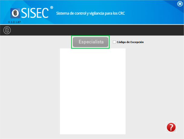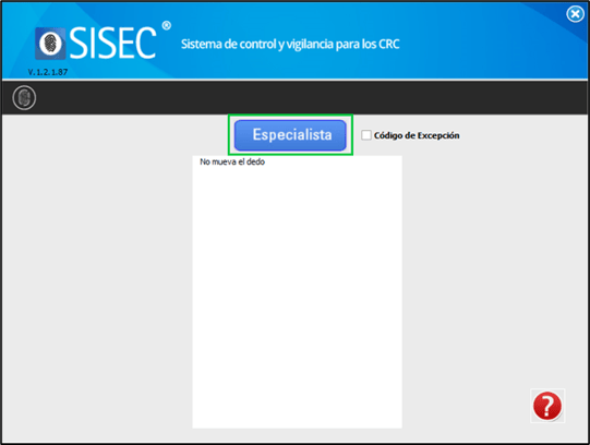 (solo se muestra cuando se hace clic en el botón “Especialista” o si se coloca una huella incorrecta).