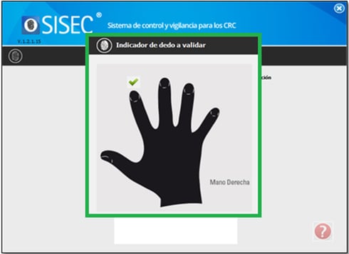 Luego de que se encienda una luz roja en el biométrico debes colocar la huella indicada en el biométrico. El sistema muestra en la pantalla la huella tomada por el biométrico.