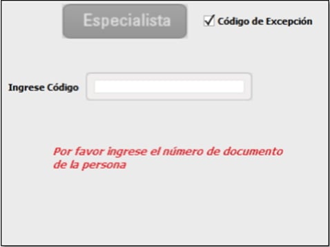 Se muestra un cuadro de texto con el título “Ingrese Código”, este es el número del documento del especialista.