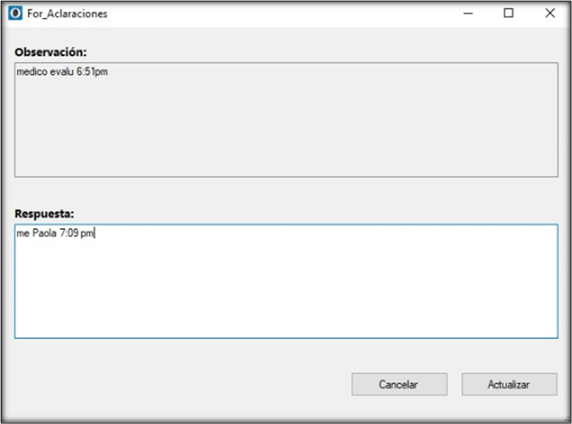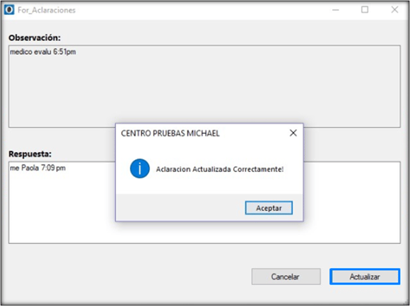 Para generar la respuesta al médico certificador debes seleccionar el botón Actualizar.