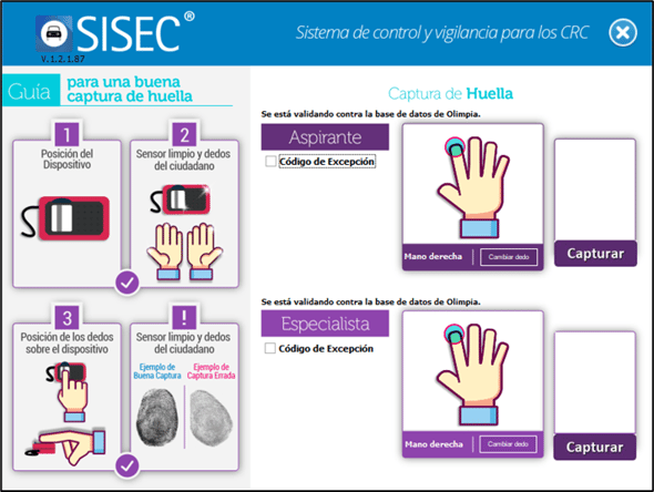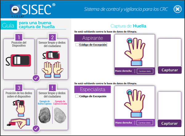 Da clic en el botón “Especialista” para iniciar la captura de huella.