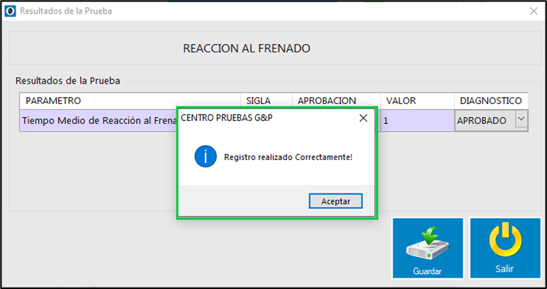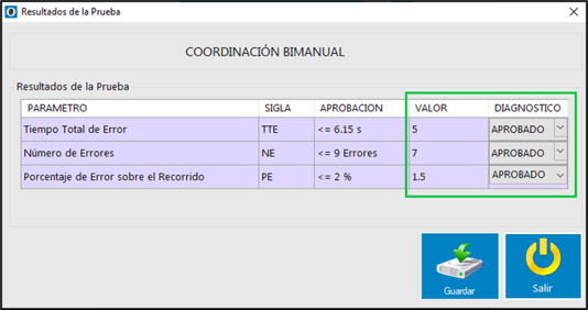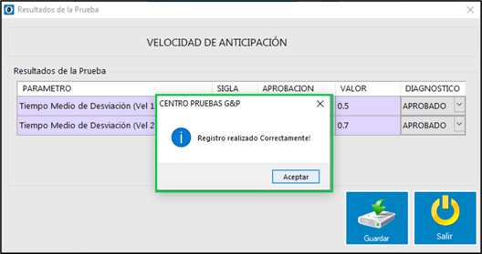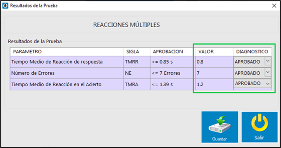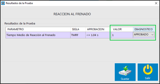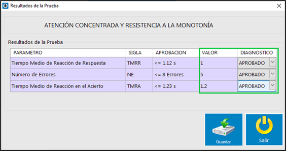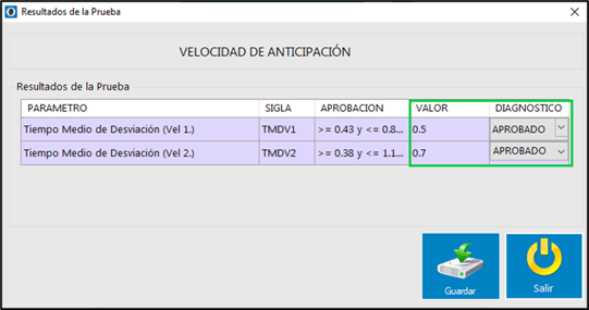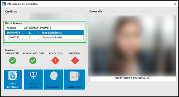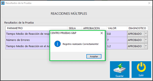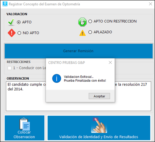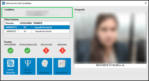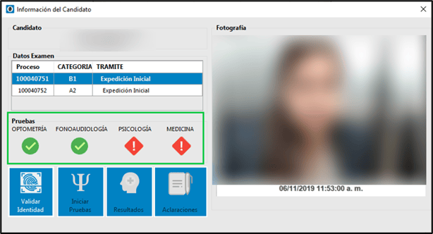 - Se visualizan los resultados del aspirante, se podrá cerrar la ventana de la prueba médica para elegir otro dispositivo.