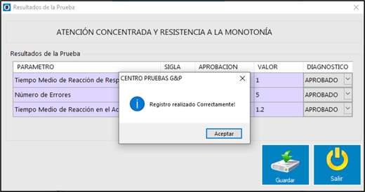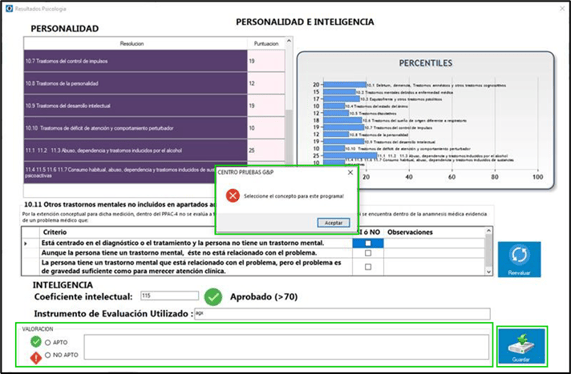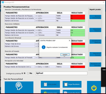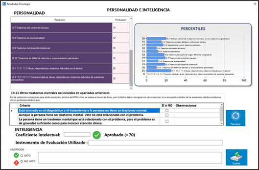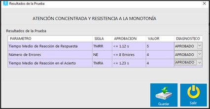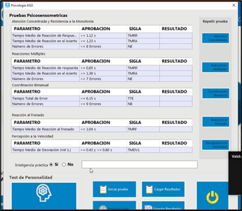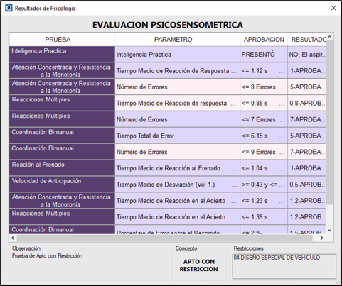 En la consulta de resultados de Psicología podrá verificar el resultado de la prueba Psicosensométricas.