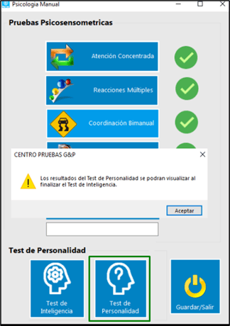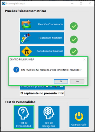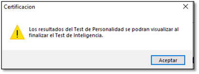 Nota: los resultados del Test de Personalidad y Test de Inteligencia no serán eliminados en caso de cambiar de dispositivo, al iniciar la prueba con el dispositivo diferente solo se permitirá realizar las pruebas Psicosensometricas.